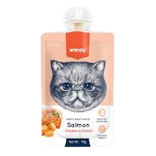 Wanpy Cat Treat Puree Salmon & Chicken & Carrot 90 grЛакомство для кошек Wanpy: пюре из лосося, курицы и моркови, 90 г